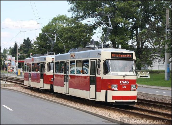 Im Rahmen der Hauptuntersuchung wurden die T3D-M 509 und 519 im Jahr 2012 für den Einsatz als Heck-an-Heck-Traktion umgebaut. Die Neulackierung der beiden Triebwagen erfolgte in den Tatrafarben rot / elfenbein und erinnert an die original T3D die am 31. Juli 2002 aus dem Liniendienst verabschiedet wurden. Triebwagen 519 wirbt weiterhin für das Straßenbahnmuseum, während T3D-M 509 individuell Werbung für verschiedene Veranstaltungen im Straßenbahnmuseum erhält.